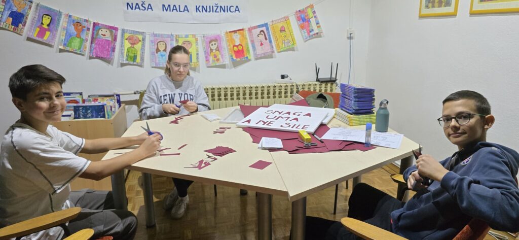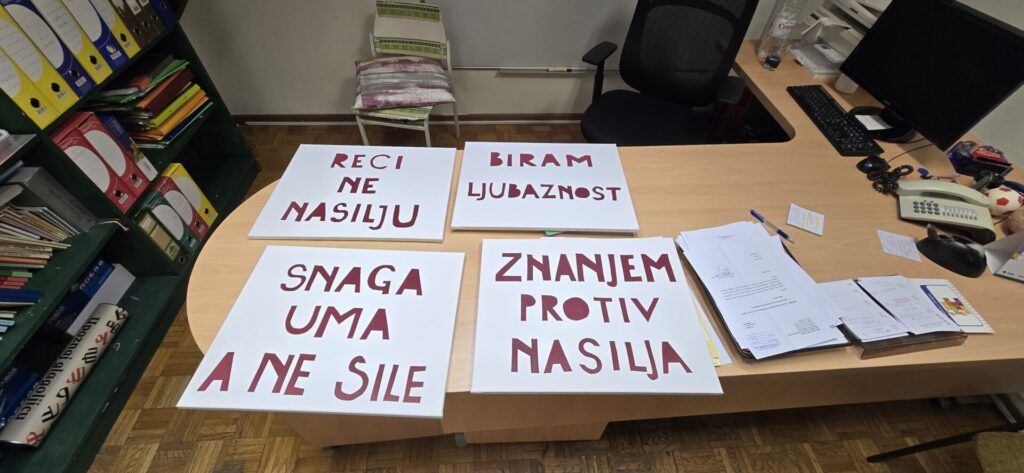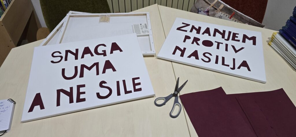 U sklopu školskog projekta „Znanjem protiv nasilja“ pod vodstvom Doc. Dr.sc. Silvije Rogošić s Učiteljskog fakulteta Sveučilišta u Zagrebu, volonteri ŠVK Manuš – Marko Juras, Andrea Desnica i Luka Kraljević pomogli su izradu transparenata za „kick off“ događaj koji će se u našoj školi održati s ciljem promoviranja jasnih i pozitivnih poruka o miru, empatiji i solidarnosti među vršnjacima. Nadamo se kako će ova aktivnost potaknuti učenike na promišljanje o važnosti nenasilne komunikacije, međusobnog poštovanja, te stvaranju sigurnog i poticajnog školskog okruženja. Dragim volonterima koji su i ovom prilikom pokazali izniman entuzijazam, odgovornost i kreativnost dajući pritom vrijedan doprinos promicanju tolerancije i dobrote upućujem – veliko hvala!