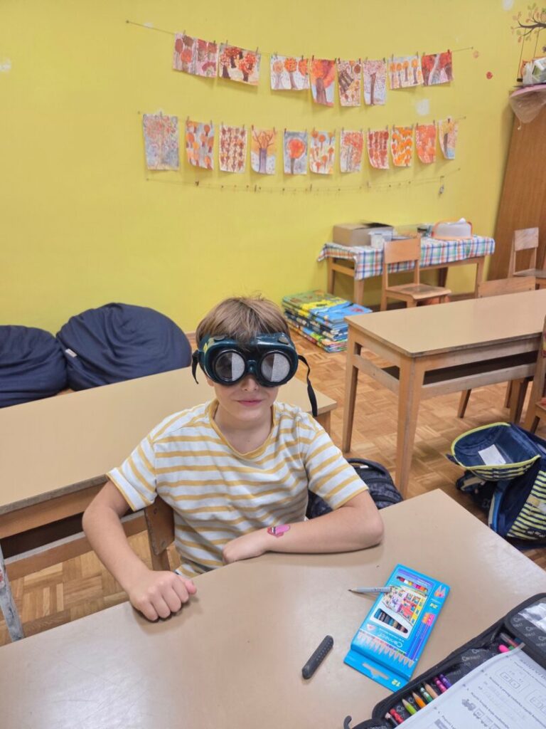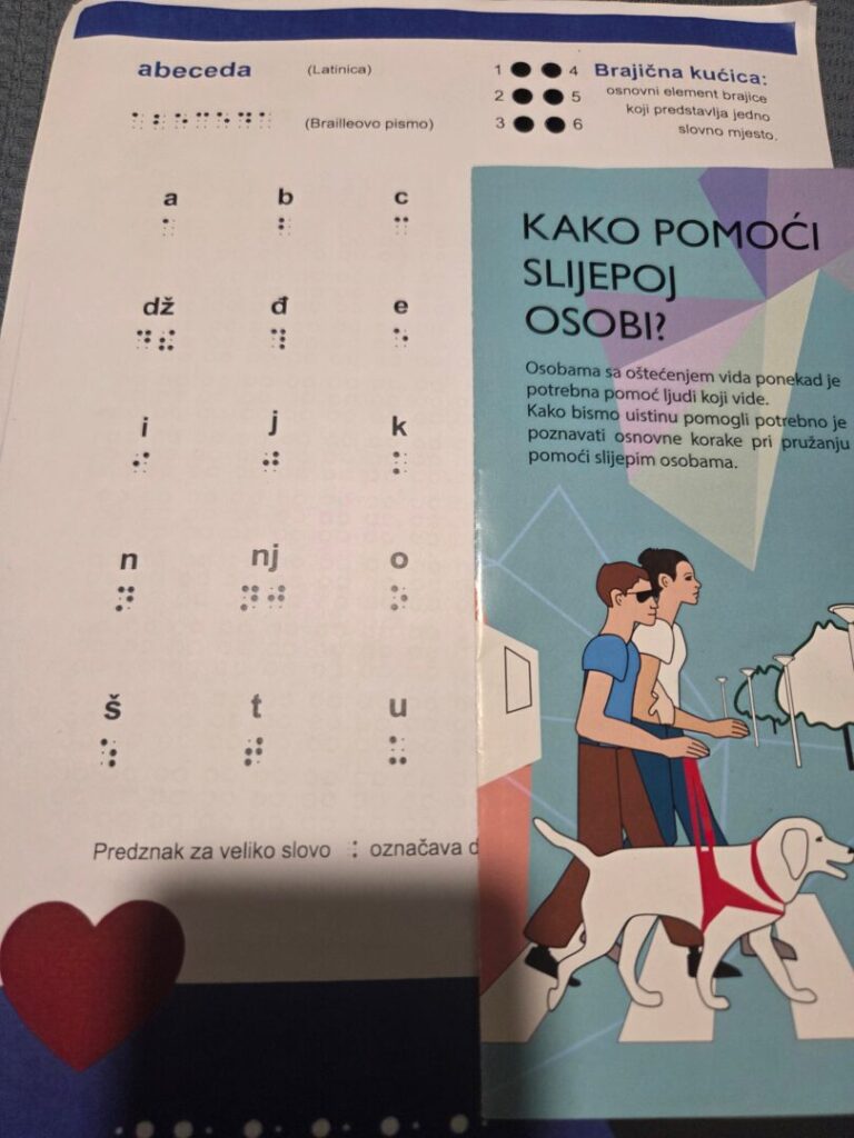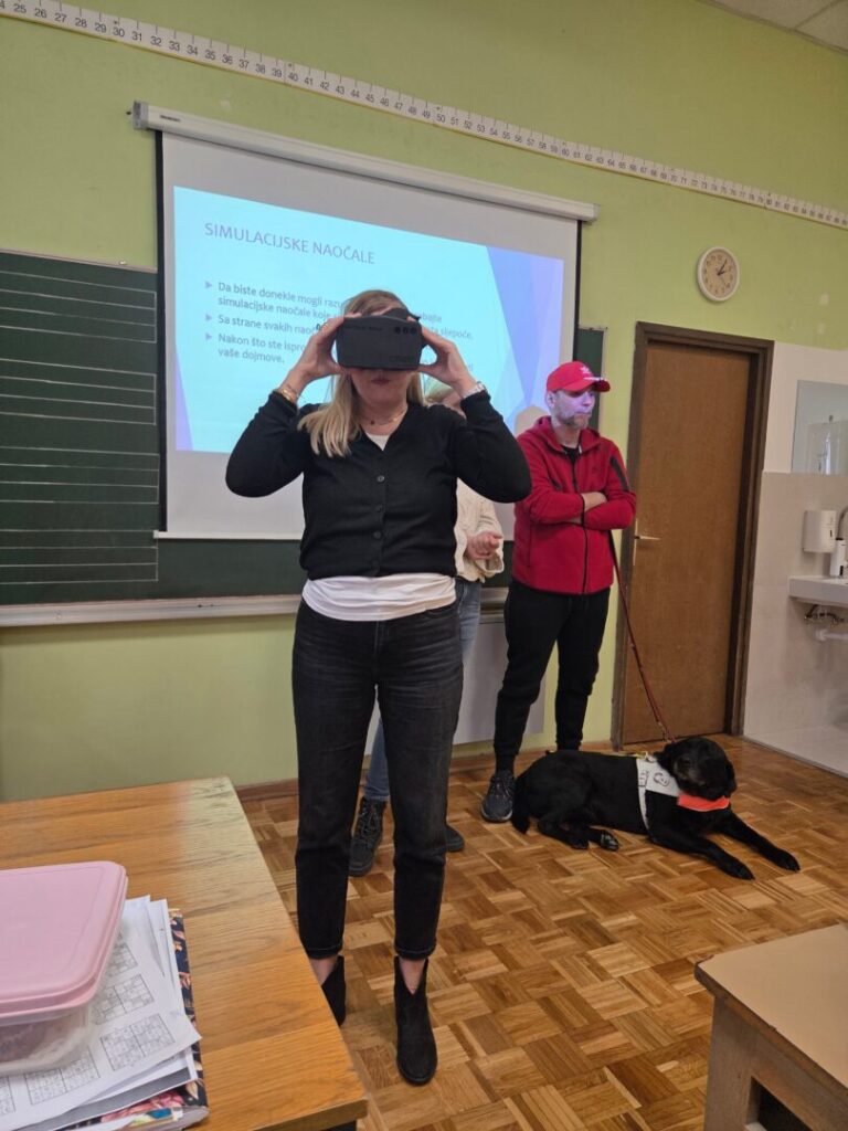 Međunarodni dan bijelog štapa obilježava se svake godine 15.listopada i to nam je bio motiv kontaktirati gospodina Ivana Tokića, predsjednika Županijske udruge slijepih u Splitu. Naime, njihova Udruga i inače ide po školama provodeći radionicu Kako žive slijepe osobe. Radionica se održavala u učionici 2.a razreda, a istu je vodila članica Udruge slijepa osoba Ivana Mitar uz pomoć videće osobe gospođe Nene Bulaja. Naravno, tu je s njima bio i predsjednik Udruge gospodin Ivan Tokić sa svojim psom vodičem Voicom. Učenicima je demonstrirano kako izgleda život slijepih osoba pomoću VR naočala. Također im je objašnjeno kako pravilno pristupiti i komunicirati sa slijepim osobama te kako im biti od pomoći. Osim toga, učenici su se upoznali s Brailleovim pismom te su uz pomoć “točkica”, tj. brajice pokušali nešto sami i napisati. Svi učenici i učiteljica osjećali su se ispunjeno i radosno nakon radionice. Topla preporuka svima za sudjelovanje u radionici jer su članovi Udruge voljni odazvati se svakom pozivu.